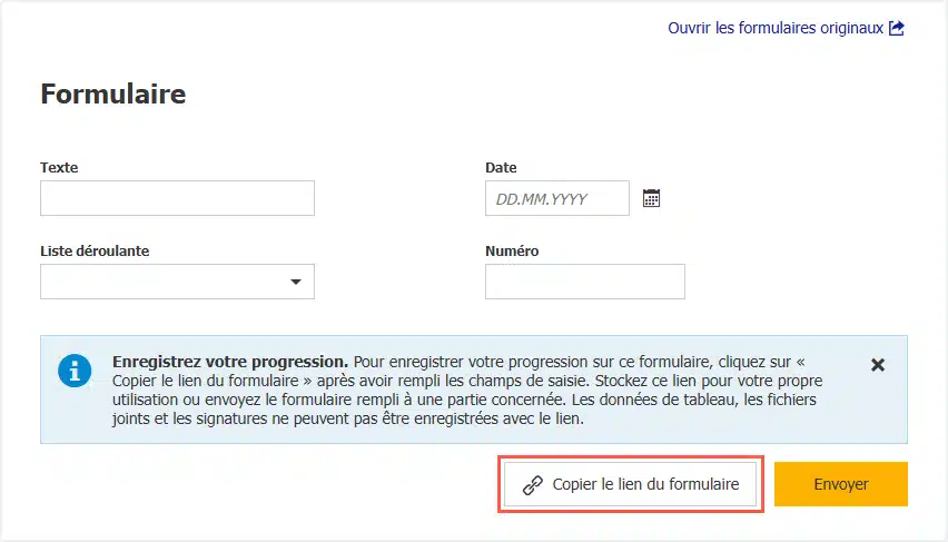 Là où l’utilisateur devait auparavant tout compléter en une seule fois, la plateforme permet désormais d’amorcer une saisie, de la reprendre ultérieurement ou même de la déléguer à un collègue sans perdre l’historique. L’administrateur, de son côté, peut préparer un formulaire avec des données déjà connues, issues d’un workflow ou d’un référentiel, afin de limiter les ressaisies et de sécuriser la qualité de l’information.