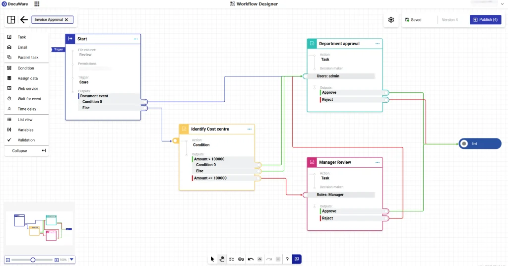 DocuWare 7.13 introduit un Workflow Designer entièrement repensé, simplifiant la création et la gestion des processus directement depuis le web. Cette version renforce également la sécurité avec l’authentification en deux étapes et améliore l’automatisation du traitement des factures électroniques, pour une expérience utilisateur plus fluide et conforme aux exigences actuelles.
